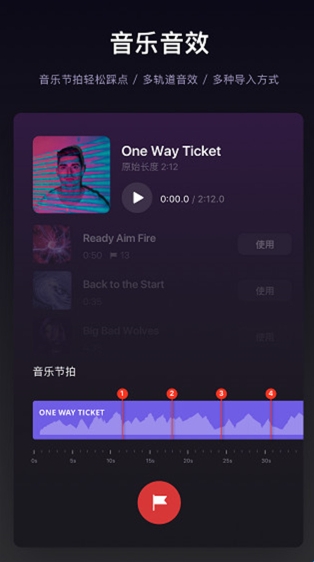 2、在音乐轨道中支持节拍标记,轻松卡点,剪出视频仪式节奏感