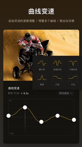 1、支持曲线变速,轻松实现视频快慢变化的特效