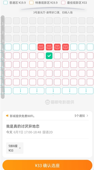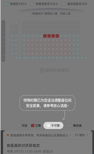 4、当然由于特色时期,电影院将位置调整为了安全距离;
