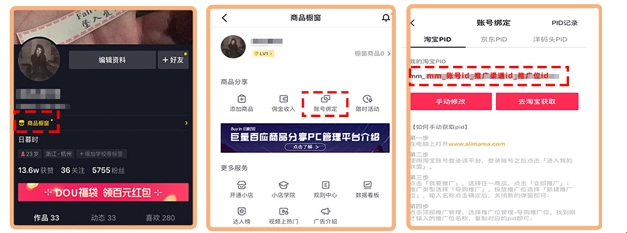 根据用户不同平台进行查看,目前可以通过抖音、快手、微博平台进行查看,各平台在淘宝联盟apa中操作方式如下