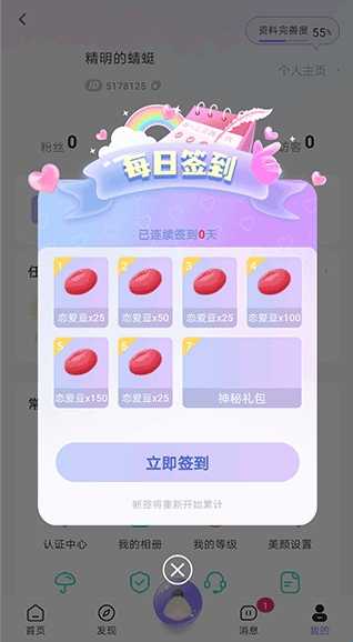 3、平台还有签到、做任务、邀请好友方式来赚取平台恋爱豆,这些恋爱豆是可以直接用来聊天,或者直接提现赚钱的