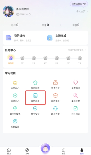 2、点击“我的相册”;