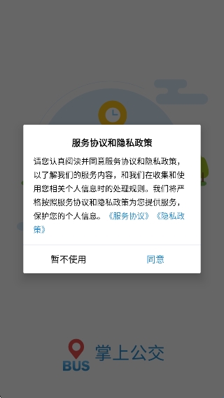 1.安装最新版“长兴公交”,点击同意进入软件;