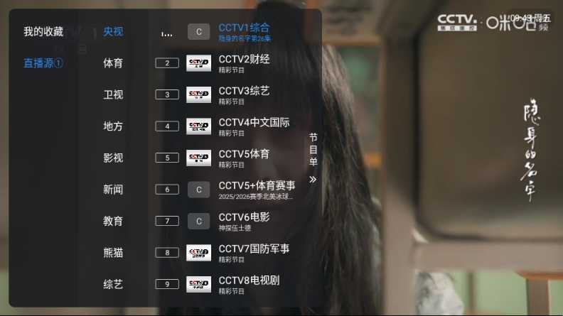 2、进入软件后,点击左边屏幕就可以更换节目。