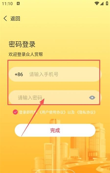 2、进入登录页面,输入手机号和验证码即可快速注册登录