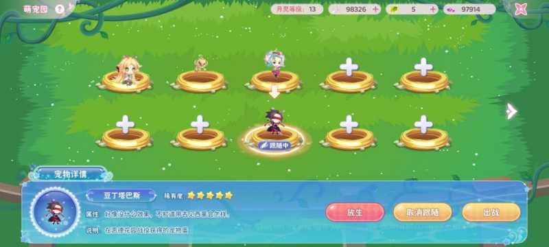 左上角打开头像找到恶德花园,可以花39神叶解锁角色,解锁之后用他玩恶德花园的小游戏升到五十级,就可以获得他的宠物蛋,放到月灵之森用羽尘喂养孵化,然后就可以随身携带了。