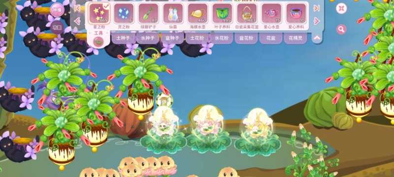 3.培育花精灵有些可能需要用道具,在花苞阶段用成功率更大。也有说法要在植物喜欢的天气或者彩虹天成功率更高,左上角可以看天气预报。在月亮花喜欢的晴天种了三朵,肥料补满,然后用星之粉催熟到还有两三个小时开花才用的道具,一共就三个都成功了。