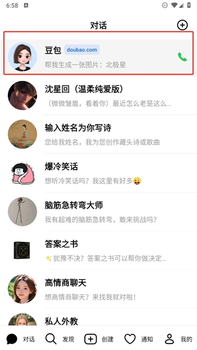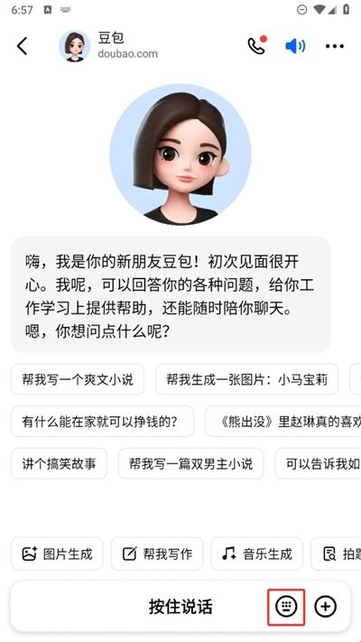 2.提供“豆包”“英语学习助手”“全能写作助手”“超爱聊天的小宁”四个对话栏