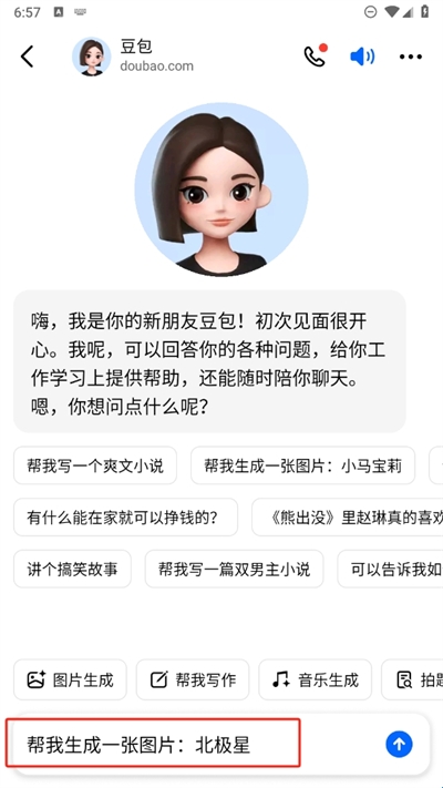3、我们以文字的内容输入想要她做的事情,在上方还有对话的模板可以使用哦。