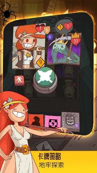 2、动态网格战斗:卡牌类型包括物品、技能与怪物。击败怪物获取金币,用以兑换地下城中的资源。每当消除一张卡牌,上方卡牌会下落填补空位,系统也会自动补充新牌,保持网格常新。