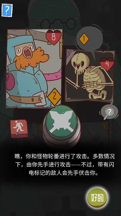 6、点击绿色图标发起攻击,多数情况下是玩家先手,不过带有闪电标记的敌人会先手伏击你;