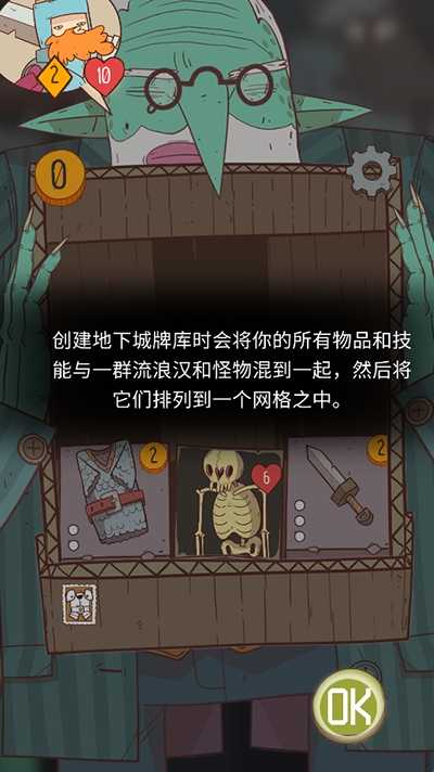 2、游戏准备阶段,创建地下城牌库时会将你的所有物品和技能与一群流浪汉和怪物混到一起,然后将它们排列到一个网格之中;