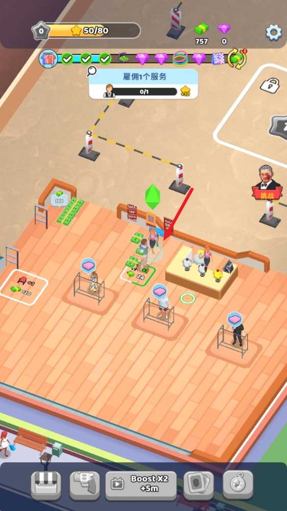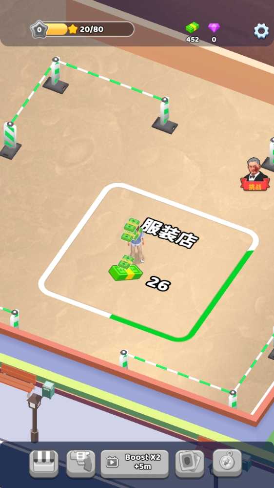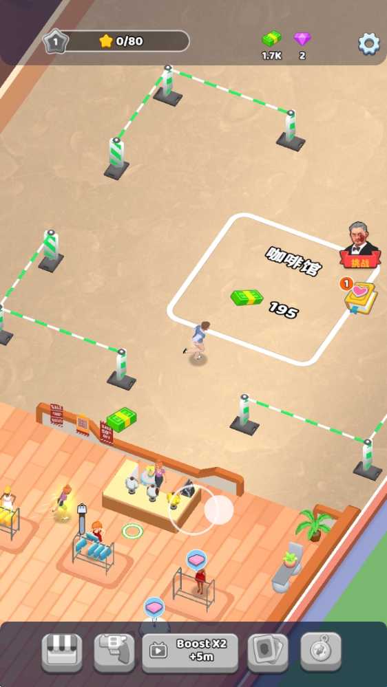 1、进入游戏后,拖动屏幕即可移动角色,花费钞票来建造自己的店铺。
