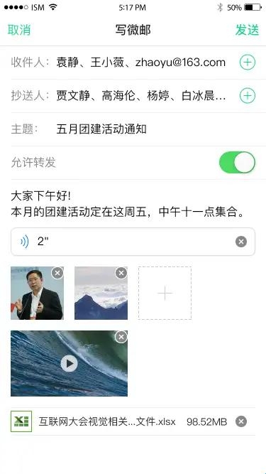 1、微邮:发送邮件的办公助手,同时可添加语音、小视频、文件及照片;
