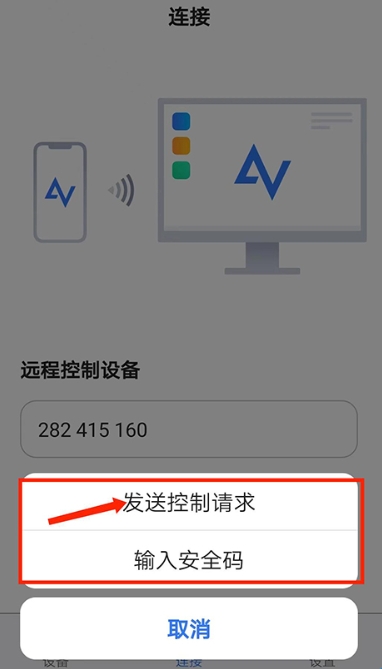 2、打开Anyviewer安卓版,将电脑端的设备ID号输入【远程控制设备】框中,选择【连接】选项,