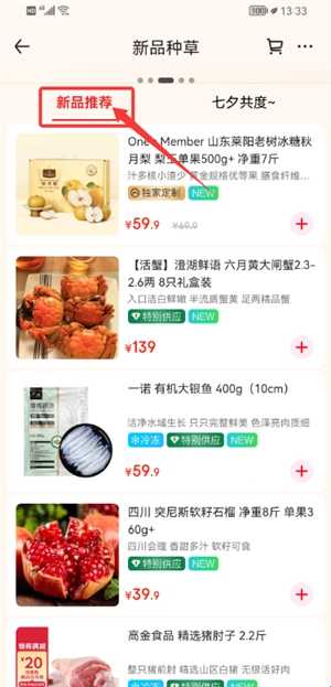 2、切换至新品种草页面,可通过“新品推荐”栏目浏览感兴趣的商品。