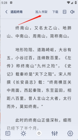 1、点击喜欢的小说进入阅读页面,点击右上角的“加入书架”。