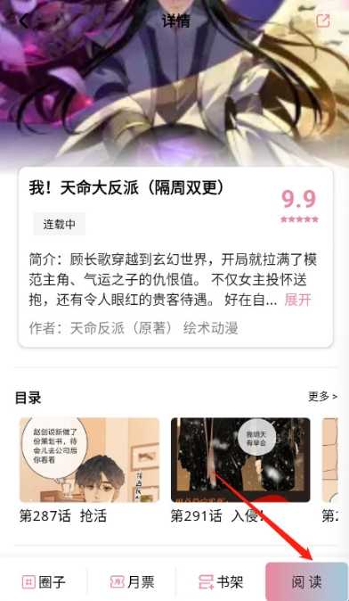 3、点开想阅读的漫画进入到详情页,然后点击右下角的阅读