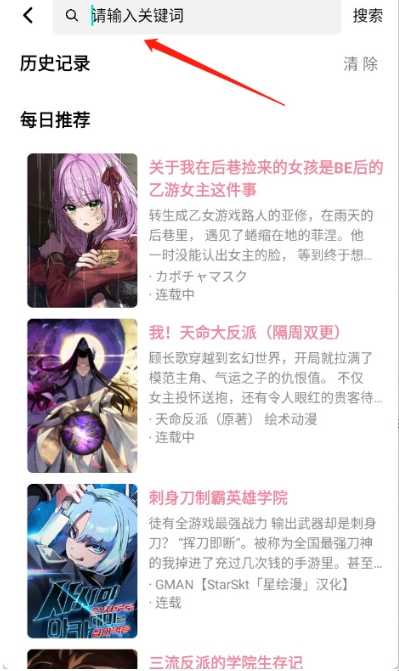 2、输入漫画名称的关键词,进行精准搜索