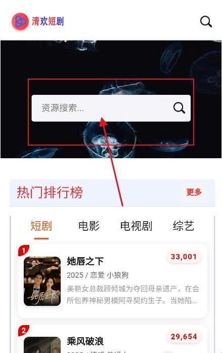 1、进入首页,可以直接文本框搜索,精准检索喜欢的短剧内容