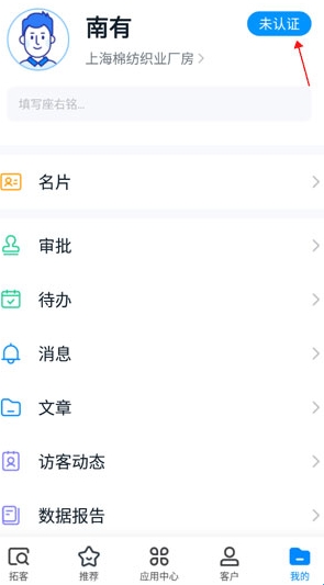1、进入软件界面后,切换到“我的”功能界面,点击右上角的“未认证”