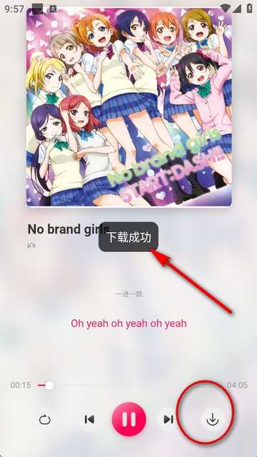 打开想下载的歌曲可以直接收听,点下载按钮可直接下载。