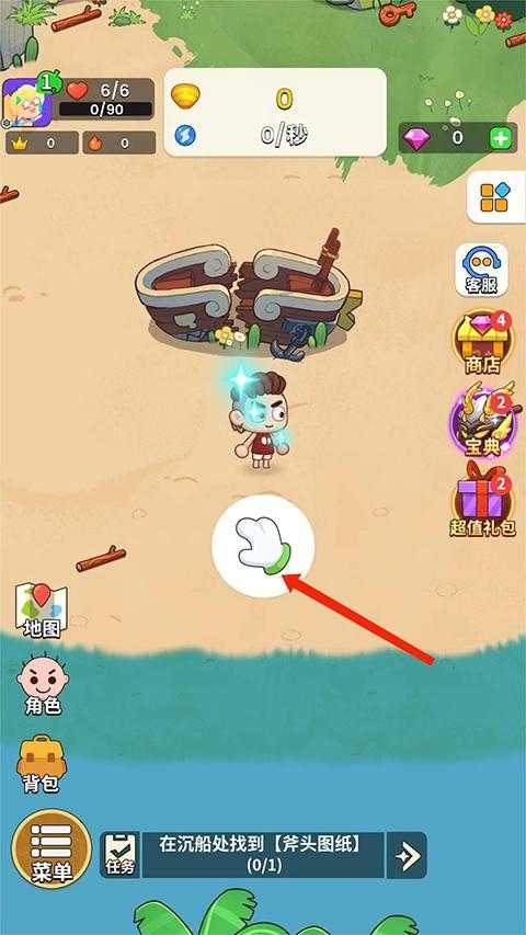 10、进入任务界面,需要在沉船处找到【斧头图纸】,触控屏幕,摇杆操作角色移动,