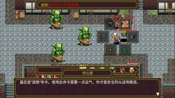 6、最后是“逃跑”命令。使用此命令需要一点运气,你才能安全的从战场撤退。不要忘了,有一些怪物是无法逃避的,例如boss。