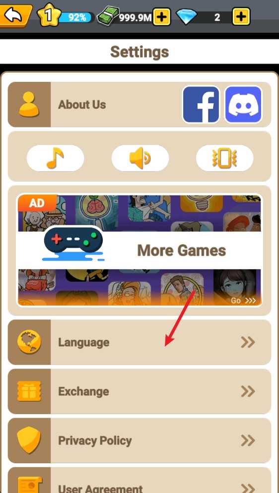 2、接着我们选择language选项,进入语言栏即可。