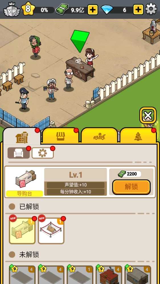 4、通过不断建设来获得经营,提升自己的经营等级,并解锁更多内容。