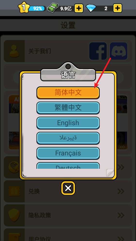 3、找到简体中文,点击就能够切换了。