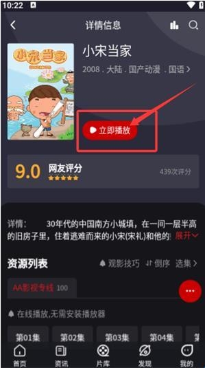 3、进入作品详情页,轻触立即播放按钮,即可开始欣赏正片内容。