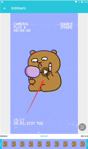 2、点击视频转换mp3功能;选择好你需要转换的片段;