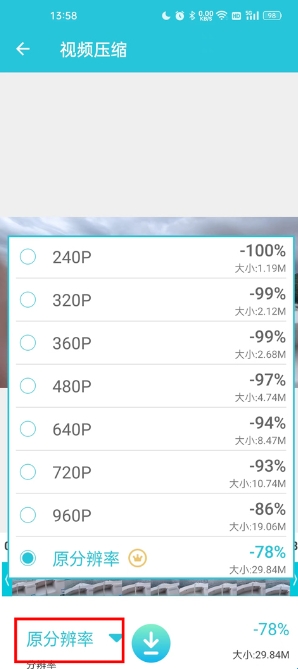 可自主选择压缩后视频的分辨率。所选分辨率越低,压缩后的文件就越小。值得注意的是,所选分辨率须低于视频原始分辨率,同时分辨率较低的情况下画质会受到一定影响。