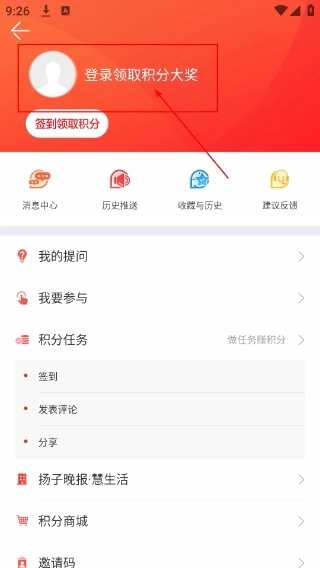 2、进入“我的”页面,点击“登录领取积分大奖”区域,进入账号的登录操作界面。