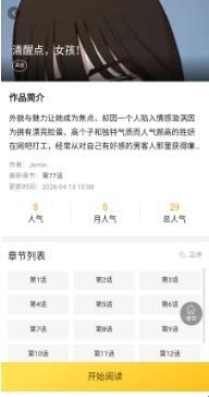应用内资源分类清晰细致,便于快速查找心仪作品。同时,漫画章节更新及时高效,确保你第一时间追上最新剧情。沉浸式的阅读界面,优化视觉体验,让每一次翻页都舒适流畅,打造专属你的漫画天堂。