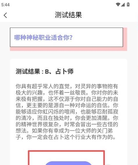 在测评列表中,选择想要参与的测试(如"哪种神秘职业适合你?"),点击进入测试页面;