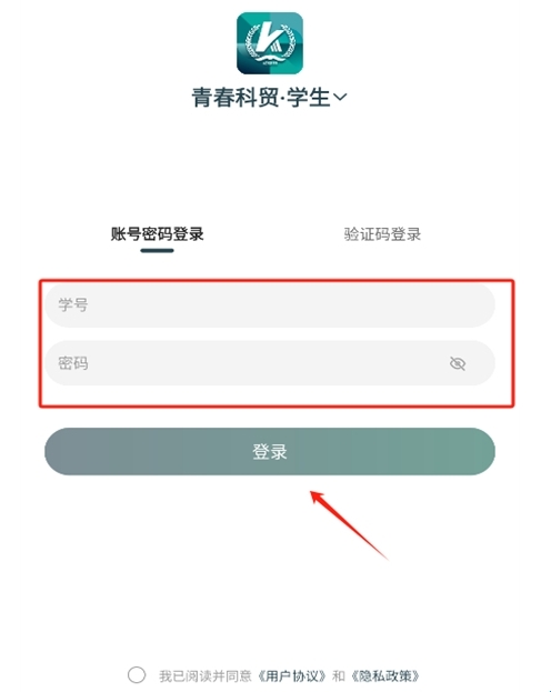 3、进入登录页面后,可以根据自己的需求选择不同的登录方式,使用账号密码登录,需要输入学号和密码点击登录即可。