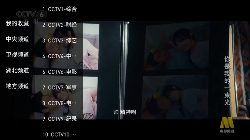 3、点击左侧,可以查看节目菜单,根据需求切换不同频道观看