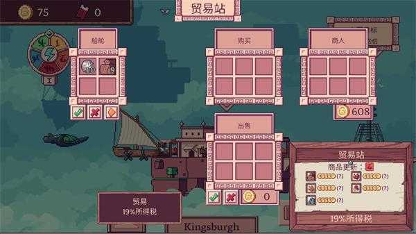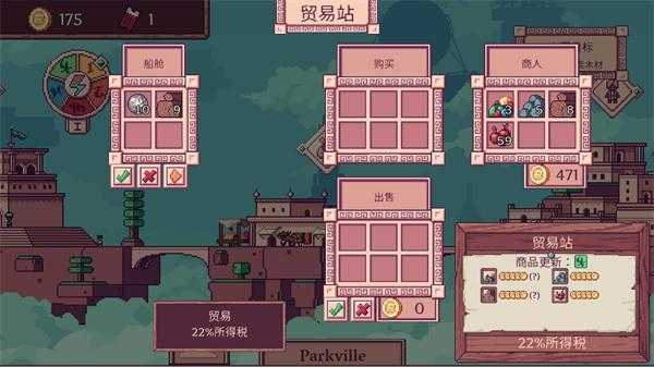4、点击贸易站可以购买和出售不同的物品,每个岛屿上的物品交易价格都是不同的,在最高点时出售获得更多金币。