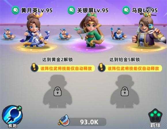 3、关银屏+黄月英+马良应该是前期最容易凑成的三羁绊阵容,也可以把这个阵容里的马良换成张部,张部的技能流沙陷阱能减慢敌人移动速度,再加上关、黄两个弓手武将可以很好的牵制敌人,这样虽然没有三蜀羁绊,但是武将之间技能配合也非常能打。