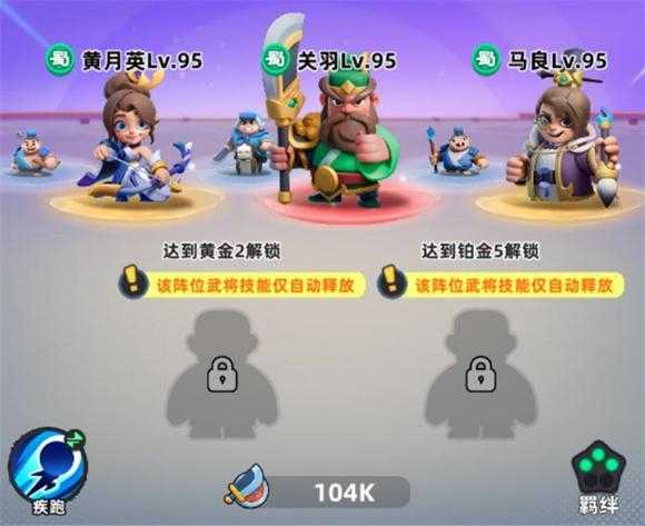 4、如果有关羽可以直接无脑上黄月英+马良+关羽的三蜀阵容,整体武将品质为2橙1稀有红,弓手 +术士+骑兵的阵容包含了近战、远程和辅助,配置十分全面。马良的技能是回复怒气,黄月英为远程攻击,关羽是近战范围伤害,无论是对战还是追击都能适配。关羽本身是一张很强力的单卡,技能出伤害快,收割能力很强,后期搭配其他阵容也十分便利。