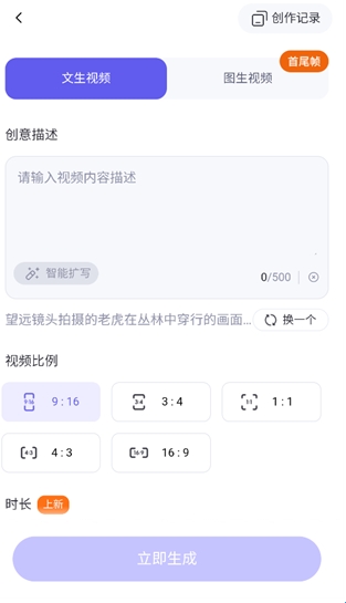 3、选择你喜欢的模版,提供两种创作模式【文生视频、图生视频】描述内容点击立即生成即可。