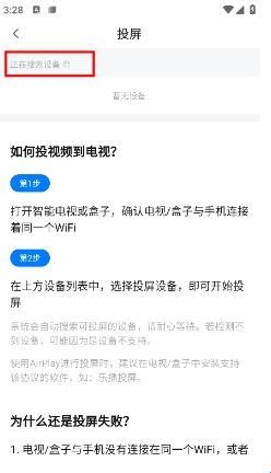 3、然后选择投屏设备即可,切记,手机和投屏的电视必须处于同一wifi状态下,否则会提示暂无设备。