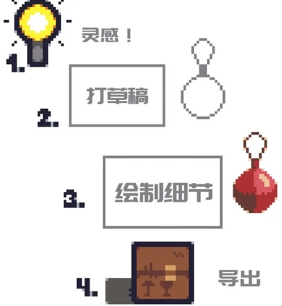 一切始于灵感。首先你需要有一个灵感,拥有灵感之后你才能在像素画中把它表现出来。因此,最好先画一个草图。你可以先画一个轮廓 -在像素画布上先描摹出大致的轮廓,或者把它画在纸上或者图形编辑器上,然后将其粘贴到像素编辑器 (一般的像素化软件都会有粘贴一个图层的功能,这个功能在这里面也有)然后开始勾勒细节。最后你需要将图片存储为适当的尺寸,然后导出它。