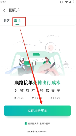 (2)选择进入“车主”页面,我们点击下方注册