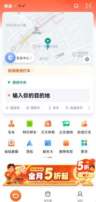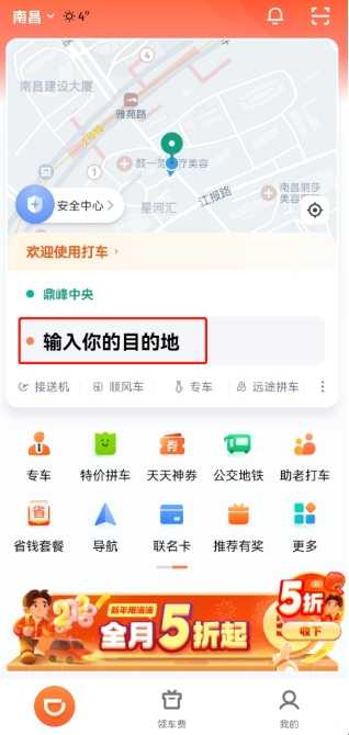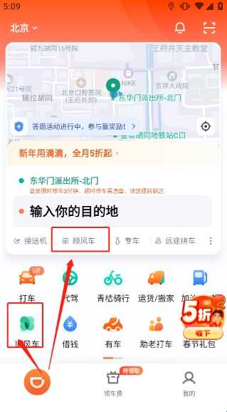 (1)进入app首页,我们可在下图所示位置打开“顺风车”