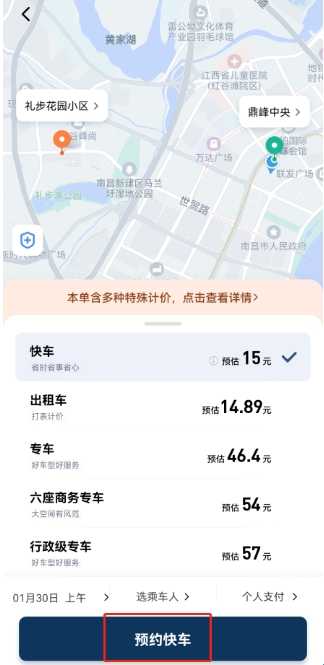 设置完成后即可点击下方的预约快车;