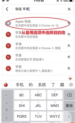 3、地图出现目的地坐标,打开屏幕下方菜单后可查看目的地详情