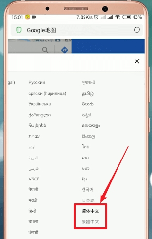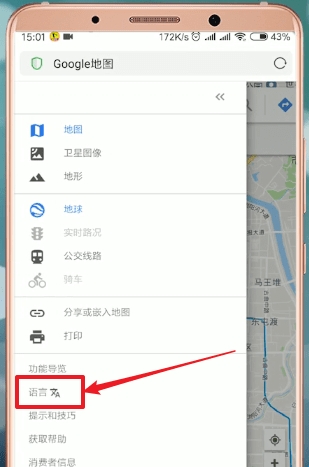 2、在弹出的菜单中,点击【语言】,可以看到谷歌地图的语言设置就在这里啦,根据需求选择【简体/繁体中文】即可。